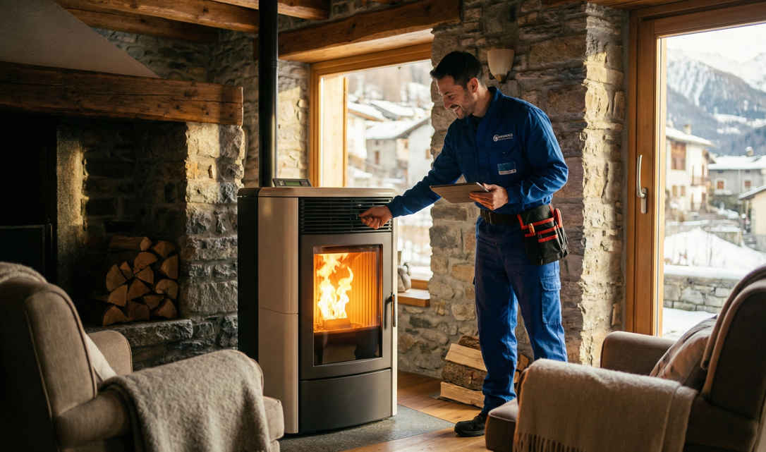 Risoluzione: installo valvola bilanciatrice e deflettore H. Rimisuro: -22 Pa stabili. Risultati: consumo pellet -40% (da 25 a 15 kg/giorno), CO zero, temperatura fumi 180°C invece di 250°C. Il proprietario risparmia 800€ annui. Misurabile, verificato.